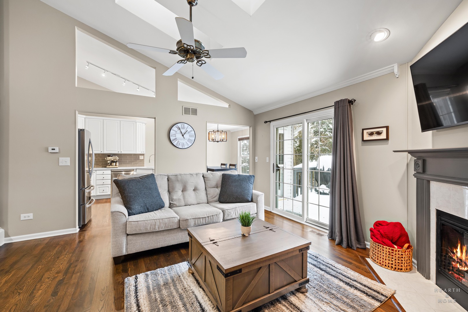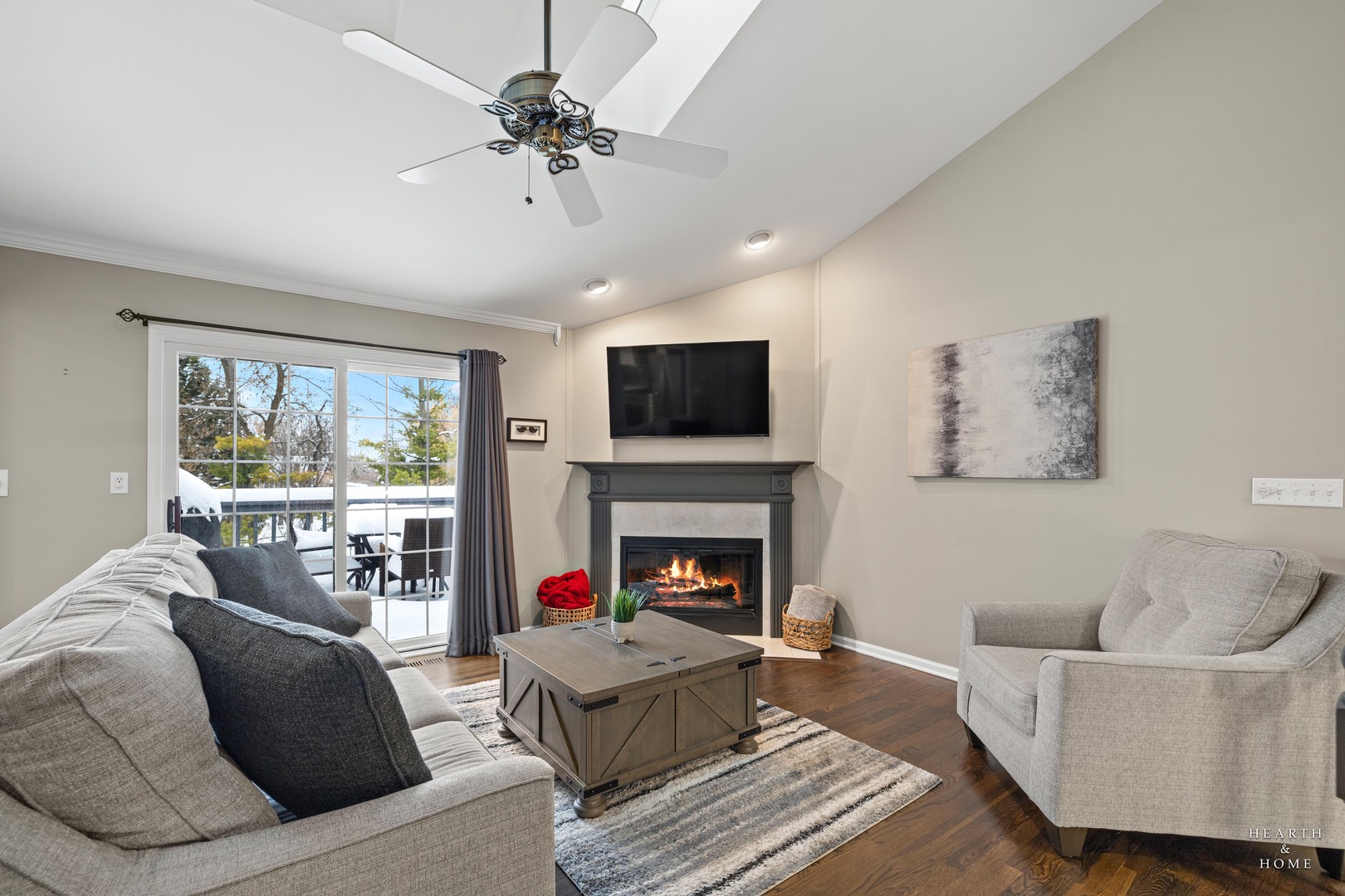 Welcome home to 679 Barlina Rd, a bright and beautifully maintained 2-bed, 2-bath townhome the highly sought after Parkview Estates. This townhome is tucked away in a quiet cul-de-sac just minutes from parks, shopping, and Crystal Lake's vibrant downtown. Step inside to an inviting open-concept living area featuring soaring ceilings, gorgeous hardwood floors, and a cozy gas log fireplace-perfect for relaxing nights in or effortless entertaining. Large windows, and skylights, fill the space with natural light, highlighting the home's warm finishes. The Stunning White and Stainless-Steel kitchen was just updated in 2022! The kitchen has wonderful table space and also walks out to a large deck area that soaks in beautiful, private nature views! The private master suite offers a jetted soaking tub with separate shower, and double vanity sinks, and private water closet. The master closet is extraordinarily large! Outside of the master suite there is a loft area that can be used as an office, exercise area, playroom etc. Enjoy the lower level that features a large family room that walks out to the backyard! The floor is heated porcelain tile! You will also find a comfortable second bedroom, a 2nd full bathroom, large laundry room, and lots of storage! Additional perks include an attached garage, low-maintenance living, and a serene setting within a beautifully kept community. Love where you live!